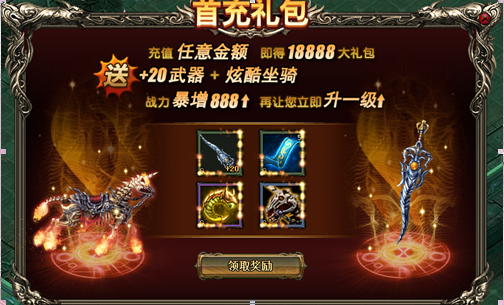 【活动内容】:游戏界面右上角查看“每日礼包”,充值指定额度即可获得充值奖励。