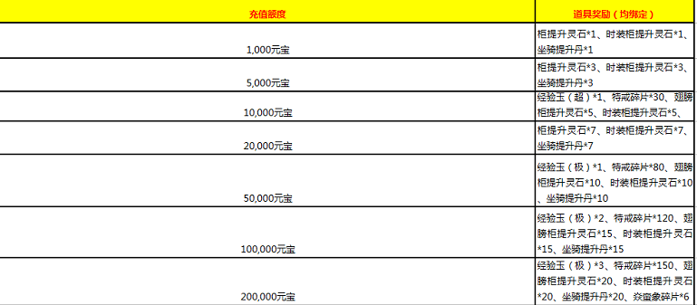 【活动内容】:活动期间,玩家充值达到相应额度即可立即领取相应额度的返利礼包,例:充值达1000000 元宝就可以领取所有返利礼包。