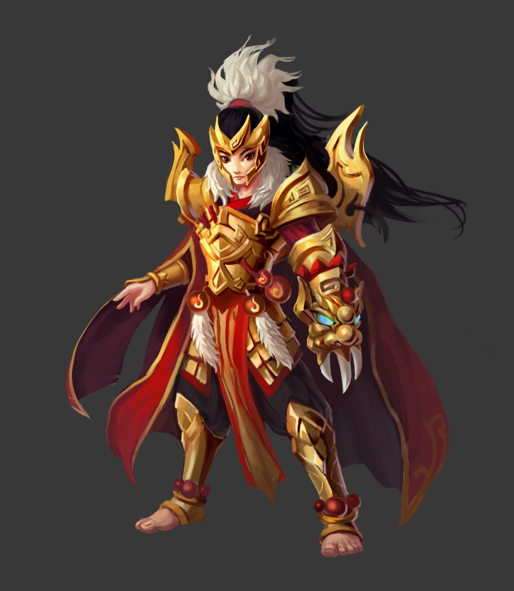 金身罗汉,绝技攻击,并为横纵排伙伴提供护盾,自己护盾效果为受到的任何直接伤害为1,其余护盾效果为被攻击后敌方被晕眩并降低80气势并减免一定比例伤害,同时相邻的人数越多,自身防御力越高