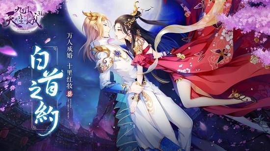 充满幻想的九州,浪漫与壮观并存,《九州天空城3D》新资料片“白首之约”正式上线。想完成曾经和挚友许下将来一起结婚的誓言吗?想给自己带来一些与众不同的感动吗?月光妖娆,走向幸福的路上铺洒着数不尽的花瓣,微风卷着花香给所有人带来爱的气息。这难得一见万人成婚的场景,就要在九州世界上演。让你的婚礼不仅只有亲朋好友见证,而是来自全九州的祝福!