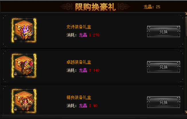 活动期间内,进行幸运探宝有一定概率获得龙晶。可以使用龙晶兑换下列极品奖励!