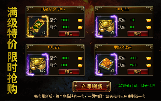 活动期间内,玩家可以在神秘商店刷新购买超值道具。