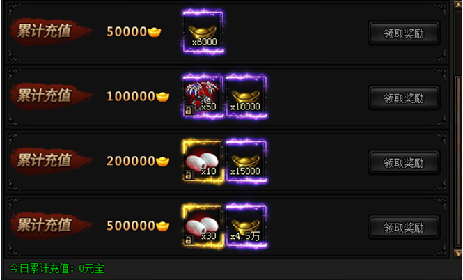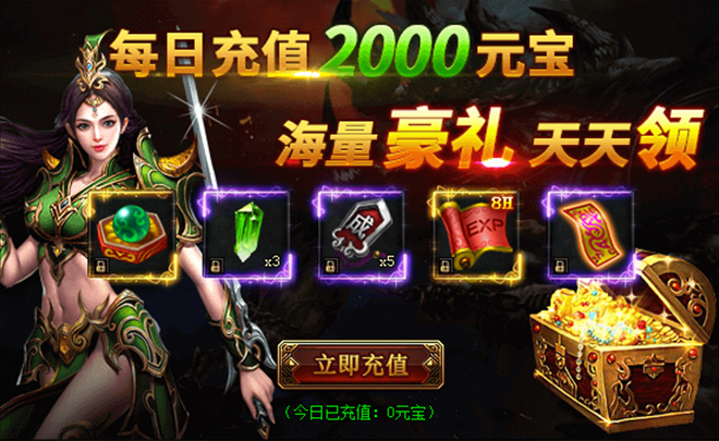活动期间,每日累计充值指定元宝即可领取奖励!(温馨提示:会产出炫酷时装)