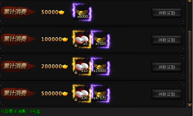 活动期间,每日累计消费指定元宝即可领取奖励!