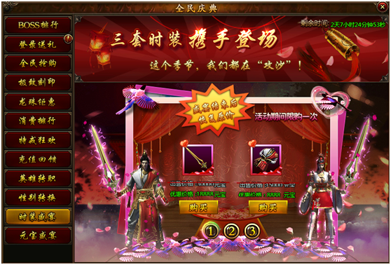 【活动说明】活动期间限时打折出售永久时装,三套时装震撼登场,机会不容错过