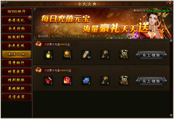 【活动说明】活动期间累计充值20、100元即可领取丰厚奖励;