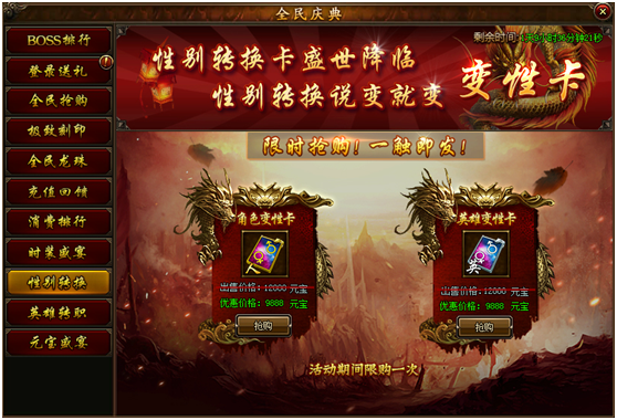 【活动说明】性别转换卡盛世降临,活动期间限时抢购。